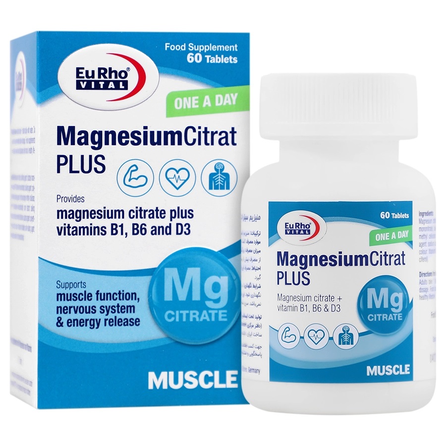 منیزیم سیترات یکی از بهترین املاح منیزیم است که از اتصال به سیتریک اسید ایجاد میشود. این فرم از منیزیم حلالیت و زیست دسترسی بالایی دارد، برای جذب نیازمند اسید معده نیست و بهآسانی از دستگاه گوارش جذب میشود. همچنین مصرف طولانی مدت منیزیم سیترات در دوزهای توصیه شده، باعث تجمع این عنصر در بدن نمیشود که این مورد بهویژه در افرادی که نیاز به مصرف مداوم منیزیم دارند حائز اهمیت است. تحقیقات جدید نشان میدهد که منیزیم سیترات علاوه بر جبران کمبود منیزیم، اثربخشی بالایی در بهبود گرفتگی عضلات و سردردهای میگرنی دارد. قرص منیزیم سیترات پلاس یوروویتال حاوی منیزیم به فرم سیترات و ویتامینهای B1، B6 و D3 است.